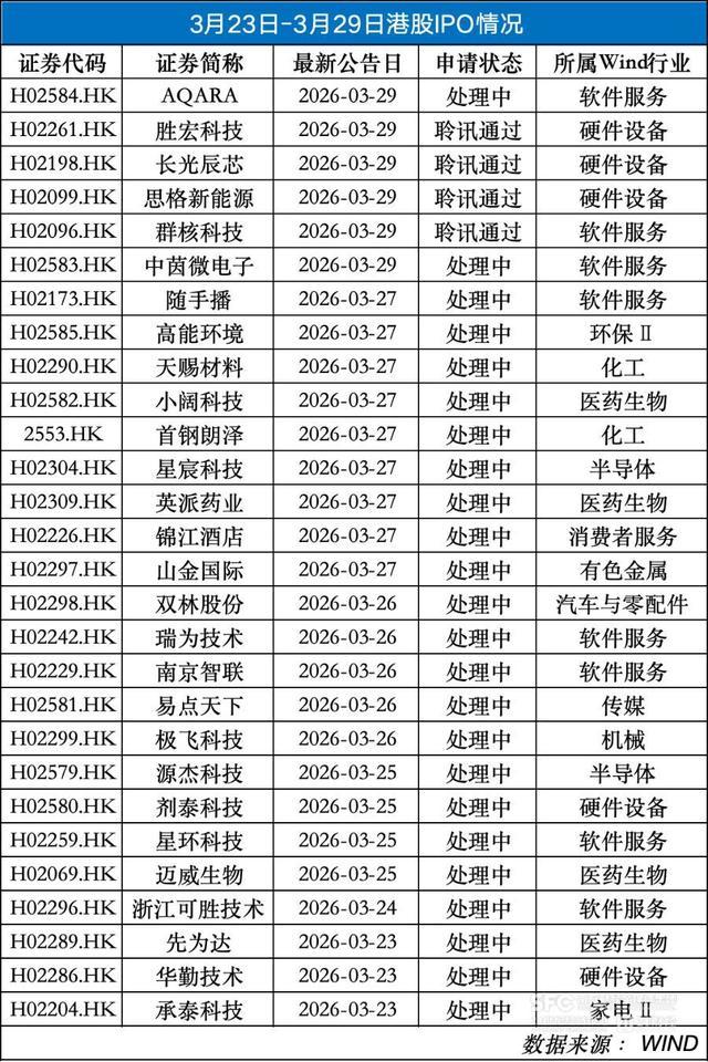 据Wind数据显示,3月23日-3月29日有24家公司向港交所递表,4家通过港交所聆讯,另有7家公司招股,及4只新股上市。