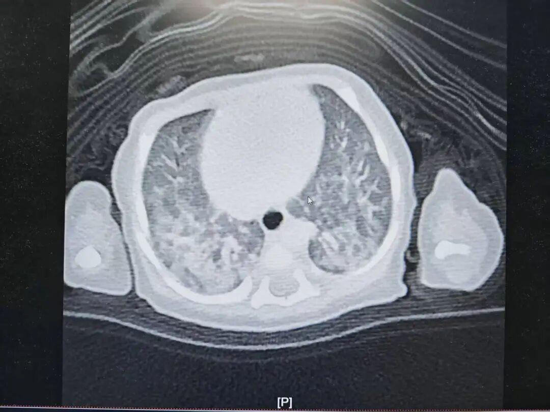面对宝宝持续离不开氧气的困境,NICU及时完善CT检查,两例患儿均提示肺内多发斑片影,考虑胎粪吸入的沉积及炎性渗出,果断联系支气管镜下肺泡灌洗。