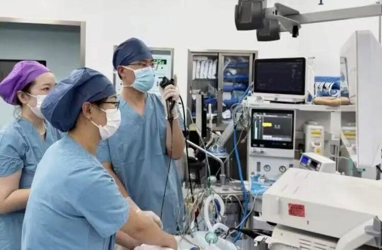 儿童呼吸内科团队在麻醉手术中心的保驾护航下,将一根纤细柔软的内镜经鼻腔轻柔地送入新生儿气道。屏幕上清晰地显示出气道内黏附的胎粪栓子。团队随即进行肺泡灌洗,用时不到20分钟,便将堵塞物清理干净。术后,两名患儿呼吸状况改善,均成功脱离了氧气支持。